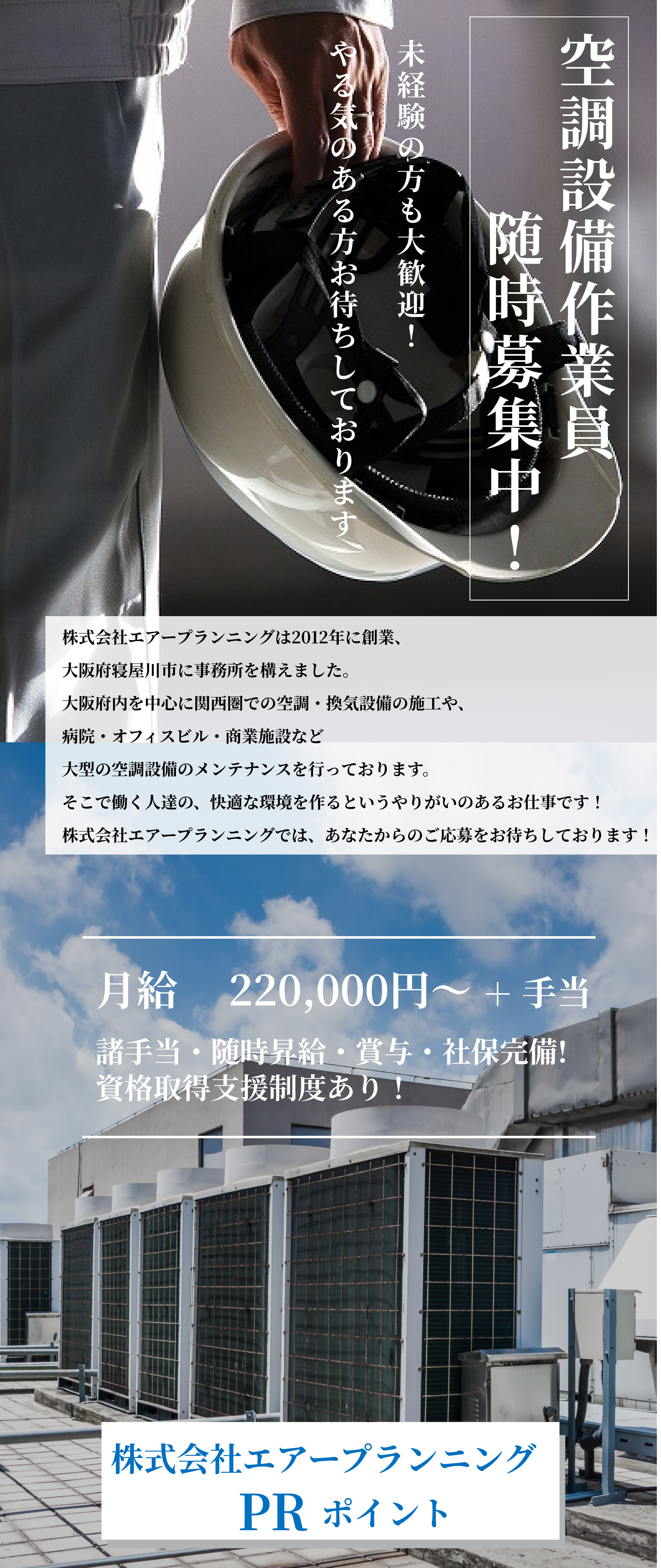 | 仕事内容 | 送風機等の整備を行っていただきます |
