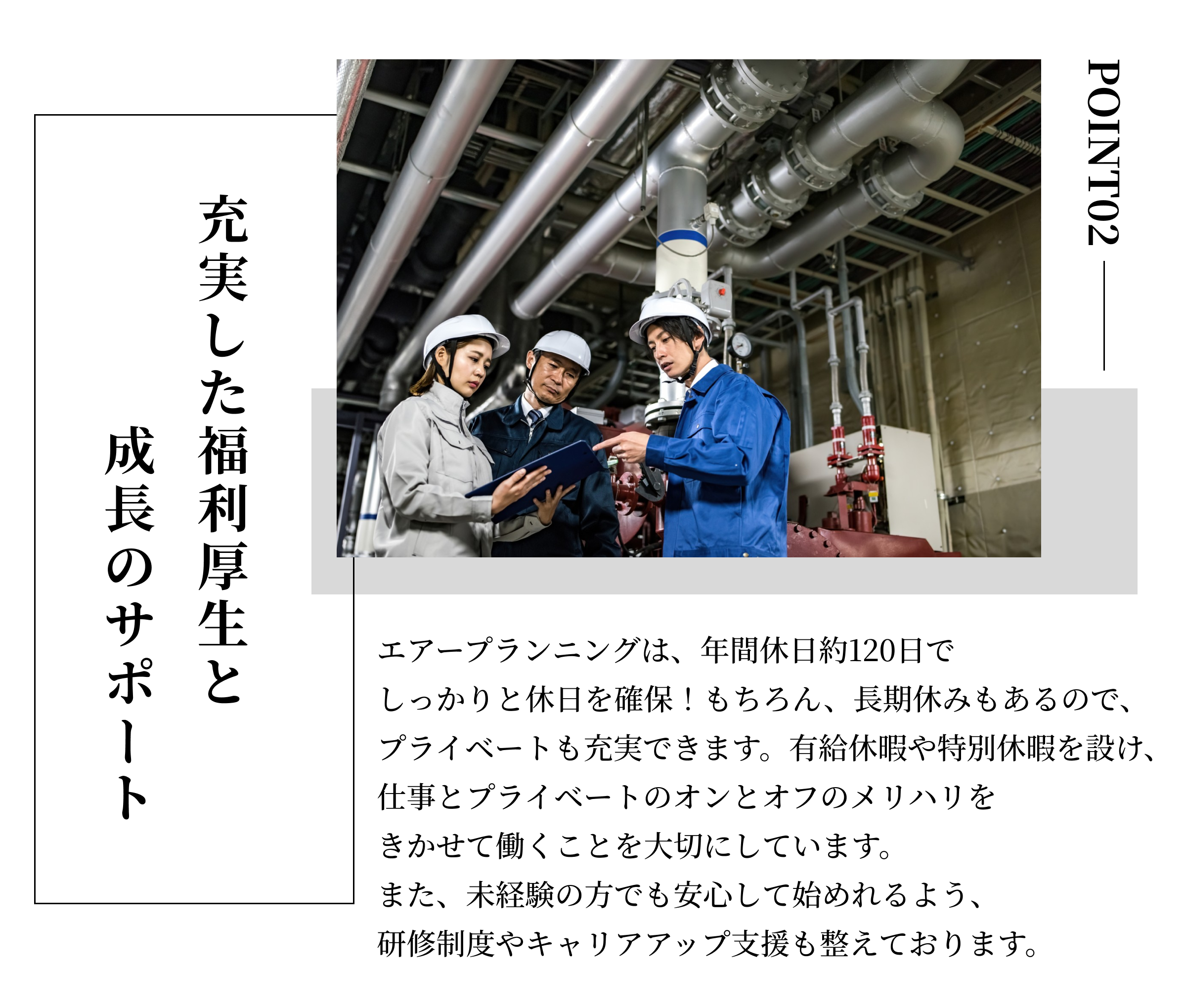 | 休日・休暇 | 土曜日、日曜日、祝日 GW、お盆、年末年始他 ※年間120日 |